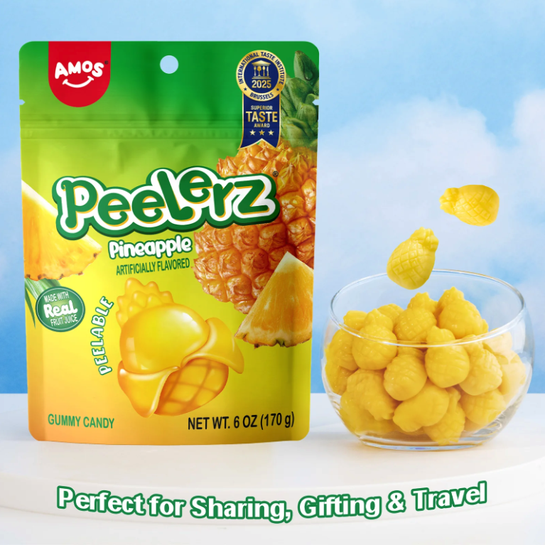 sabor a piña infusionado, una capa exterior suave y elástica y un centro de gel sólido.